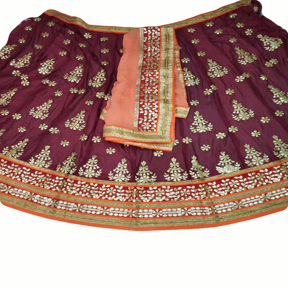 An eye catching Designer Gotta Patti Lehenga for Wedding and Party Occasions with Contrast Dupatta to add more style in your look…Must be in your wardrobe collection….