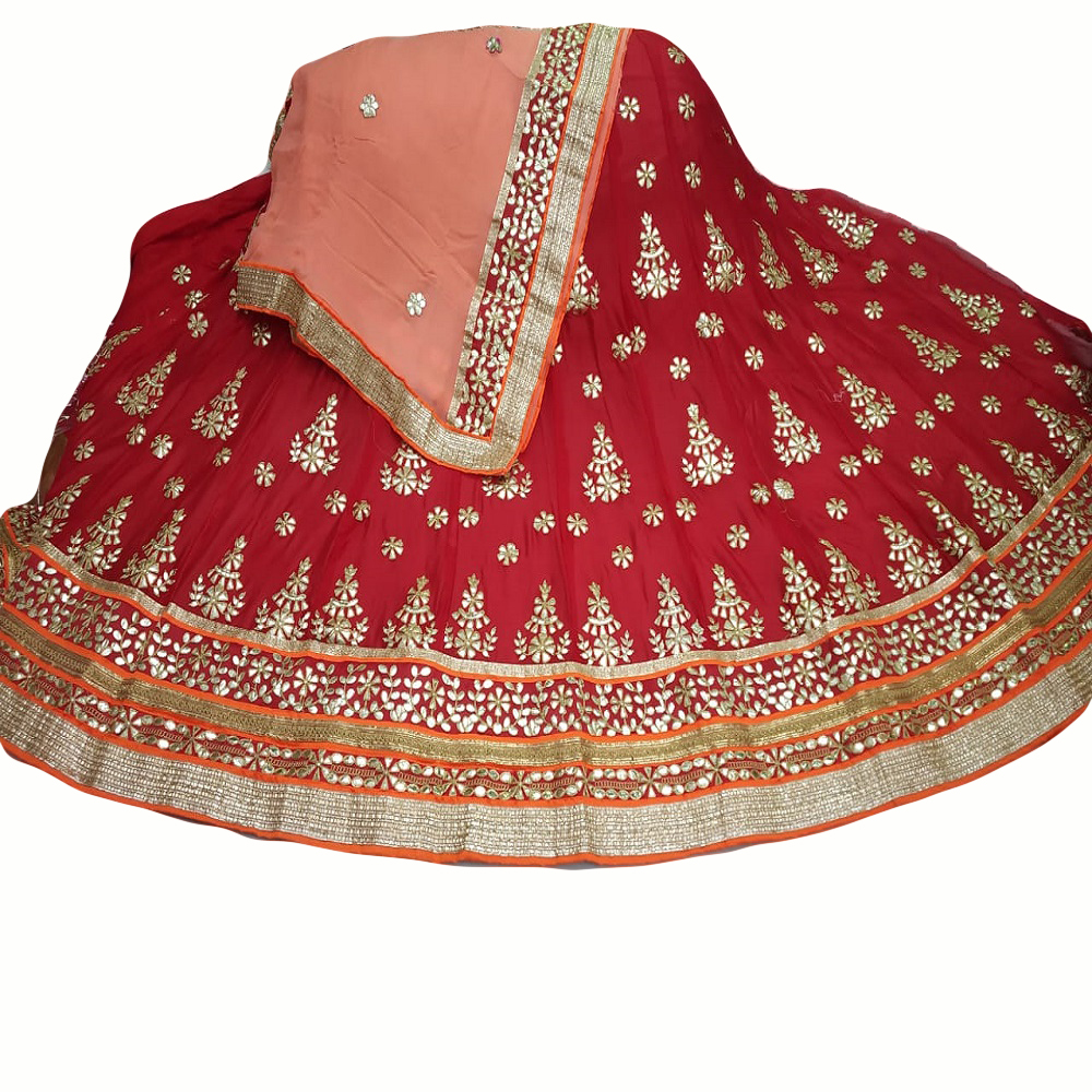 An eye catching Designer Gotta Patti Lehenga for Wedding and Party Occasions with Contrast Dupatta to add more style in your look…Must be in your wardrobe collection….