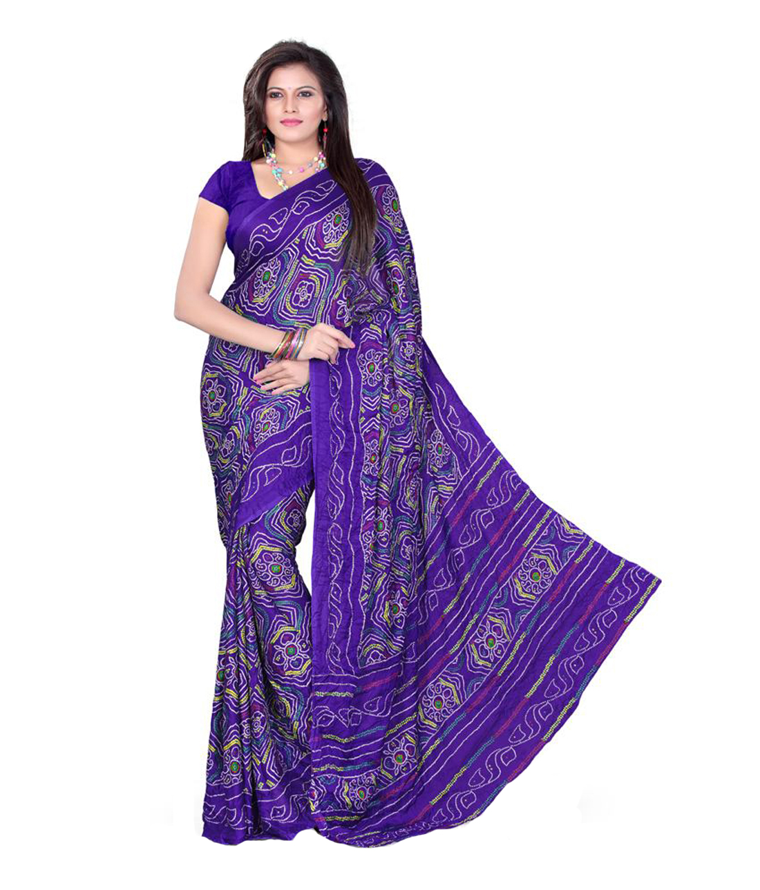 Traditional Royal Blue Color Moss Crepe Bandhani Bandhej Chunri Saree With Running Blouse. Colors may slightly vary as of display settings.