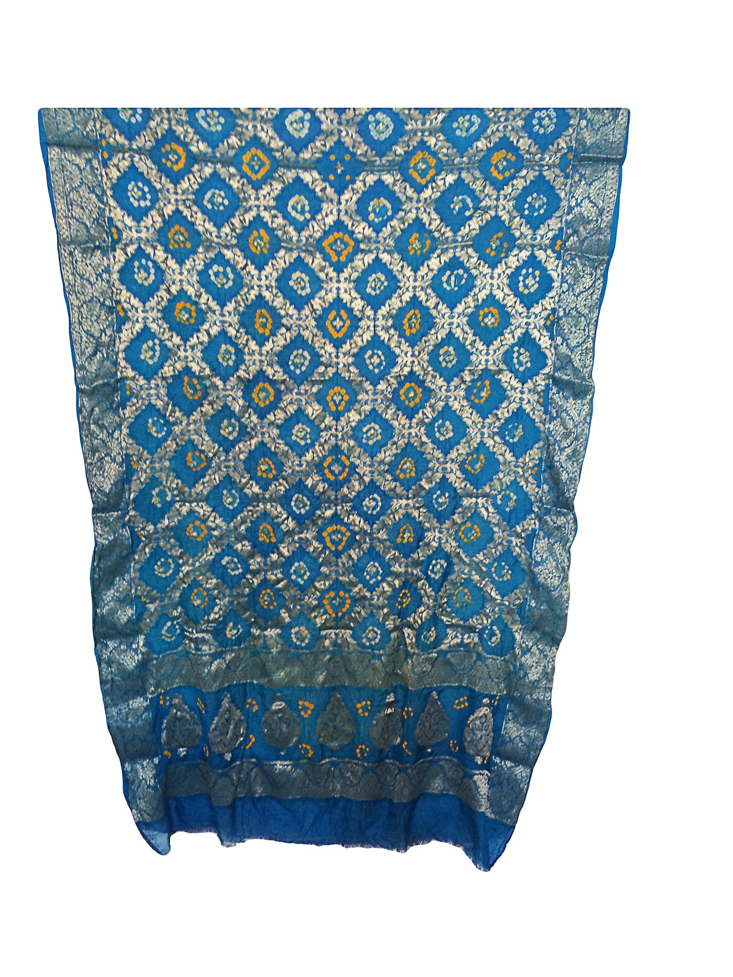 Traditional Banarsi Ghatchola Bandhej Zari Sky Blue Color Online Dupatta