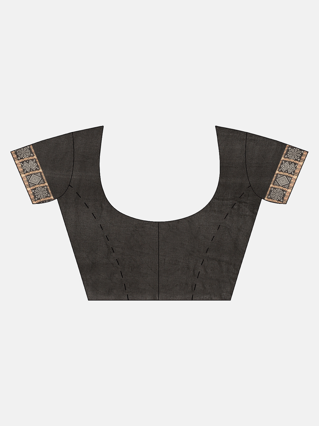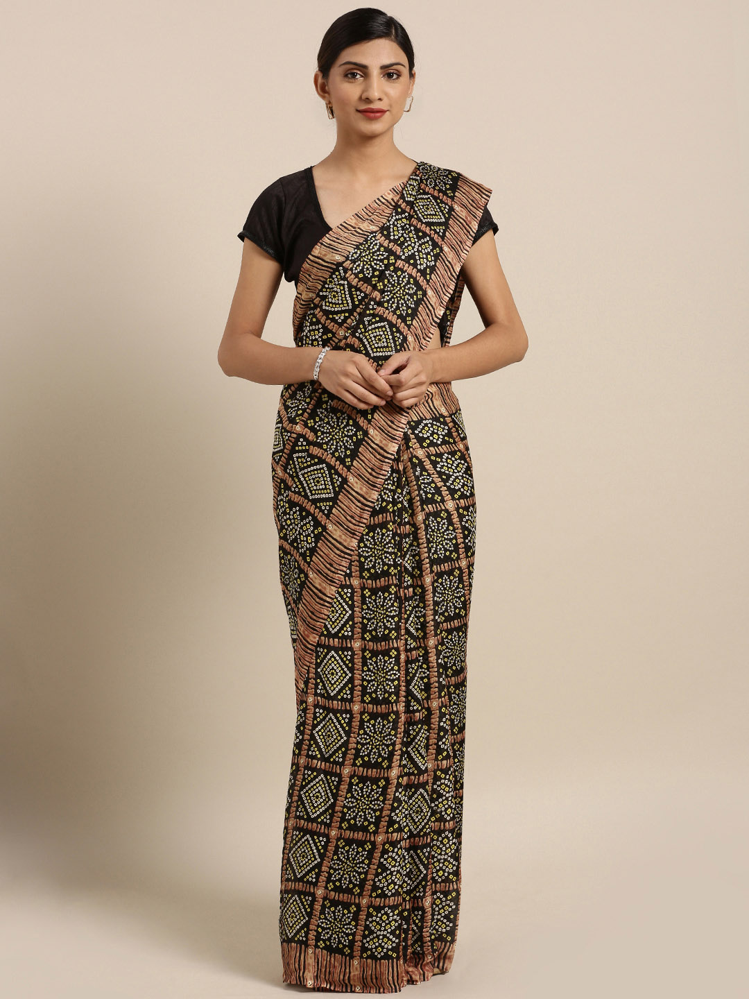 Black Ghatchola Printed Saree And Has A Printed Border.. The Model Is Wearing A Blouse From Our Collection, See The Image For A Blouse What The Actual Blouse Would Look Like...It Has A Smooth Drape And Has A Shiny Appearance.