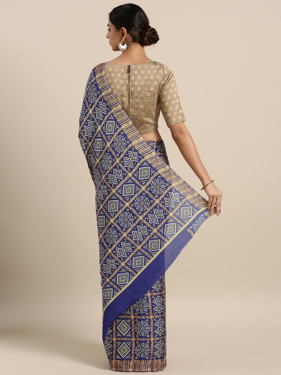 Blue Ghatchola Printed Saree And Has A Printed Border.. The Model Is Wearing A Blouse From Our Collection, See The Image For A Blouse What The Actual Blouse Would Look Like...It Has A Smooth Drape And Has A Shiny Appearance.