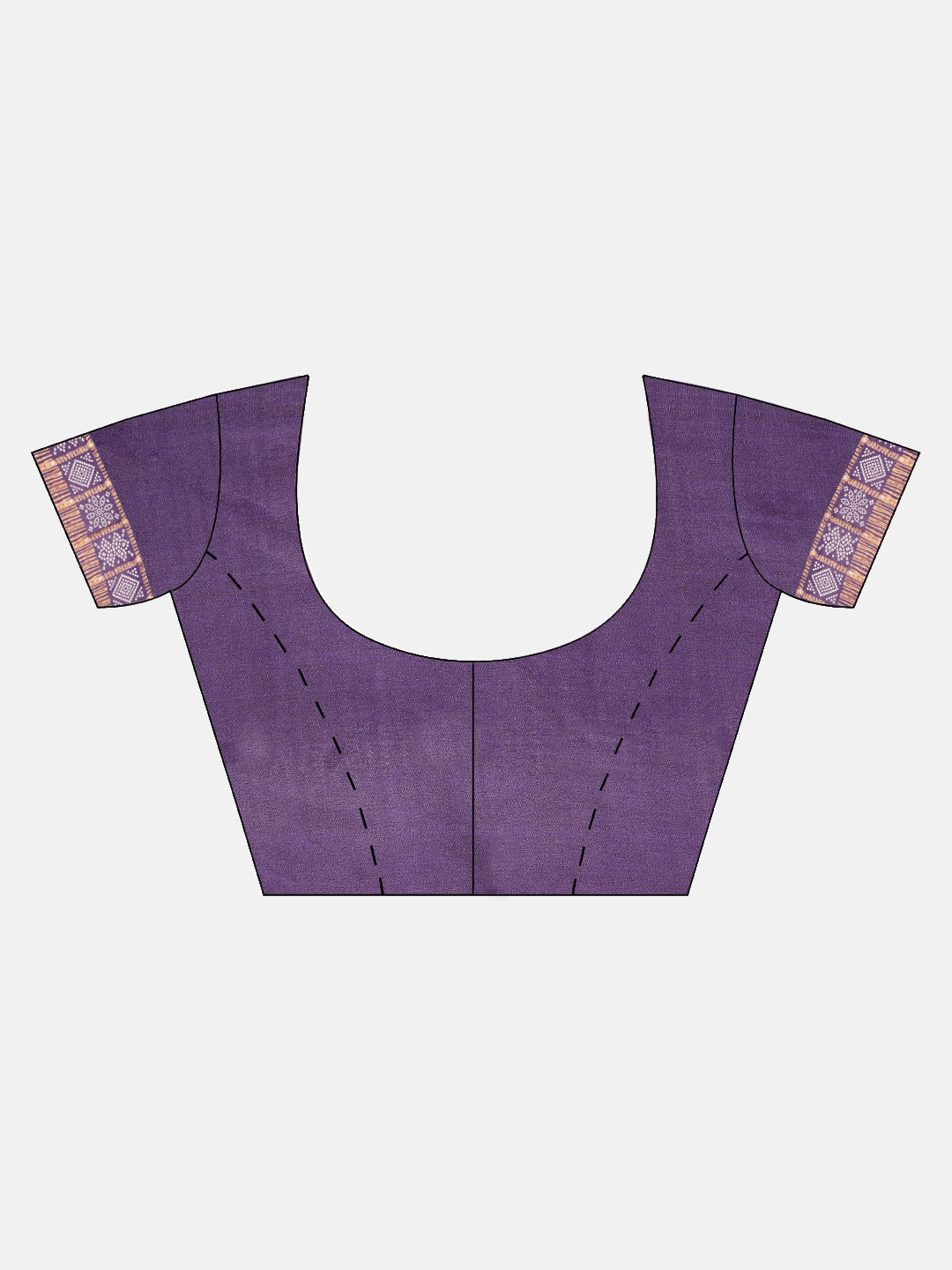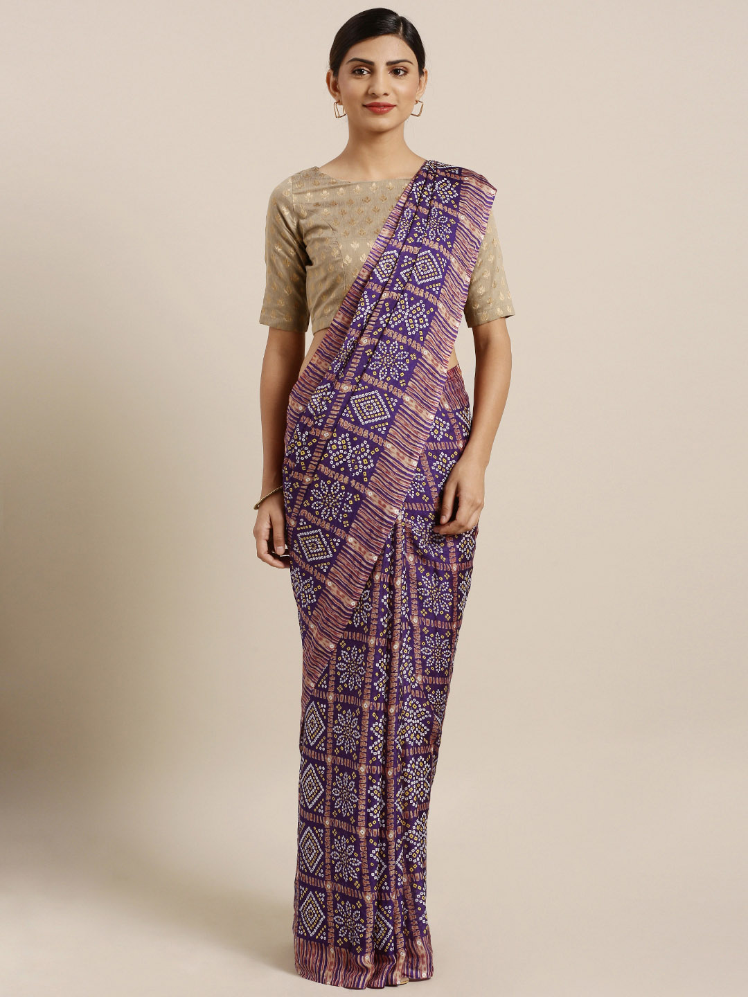 Purple Ghatchola Printed Saree And Has A Printed Border.. The Model Is Wearing A Blouse From Our Collection, See The Image For A Blouse What The Actual Blouse Would Look Like...It Has A Smooth Drape And Has A Shiny Appearance.