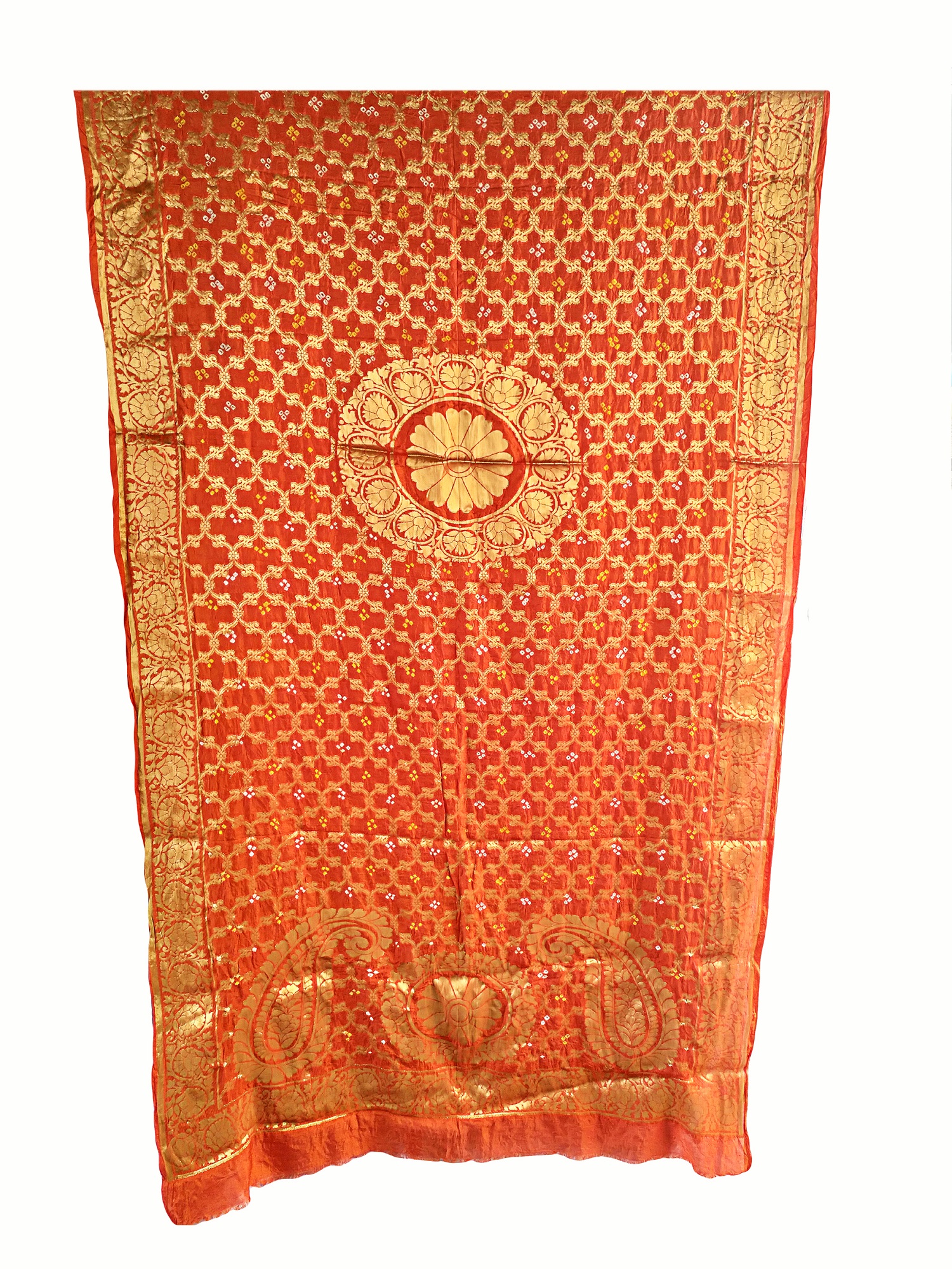Traditional-Rajasthani-Online-Banarsi-Ghatchola-Bandhej-Zari-Orange-Color-Dupatta