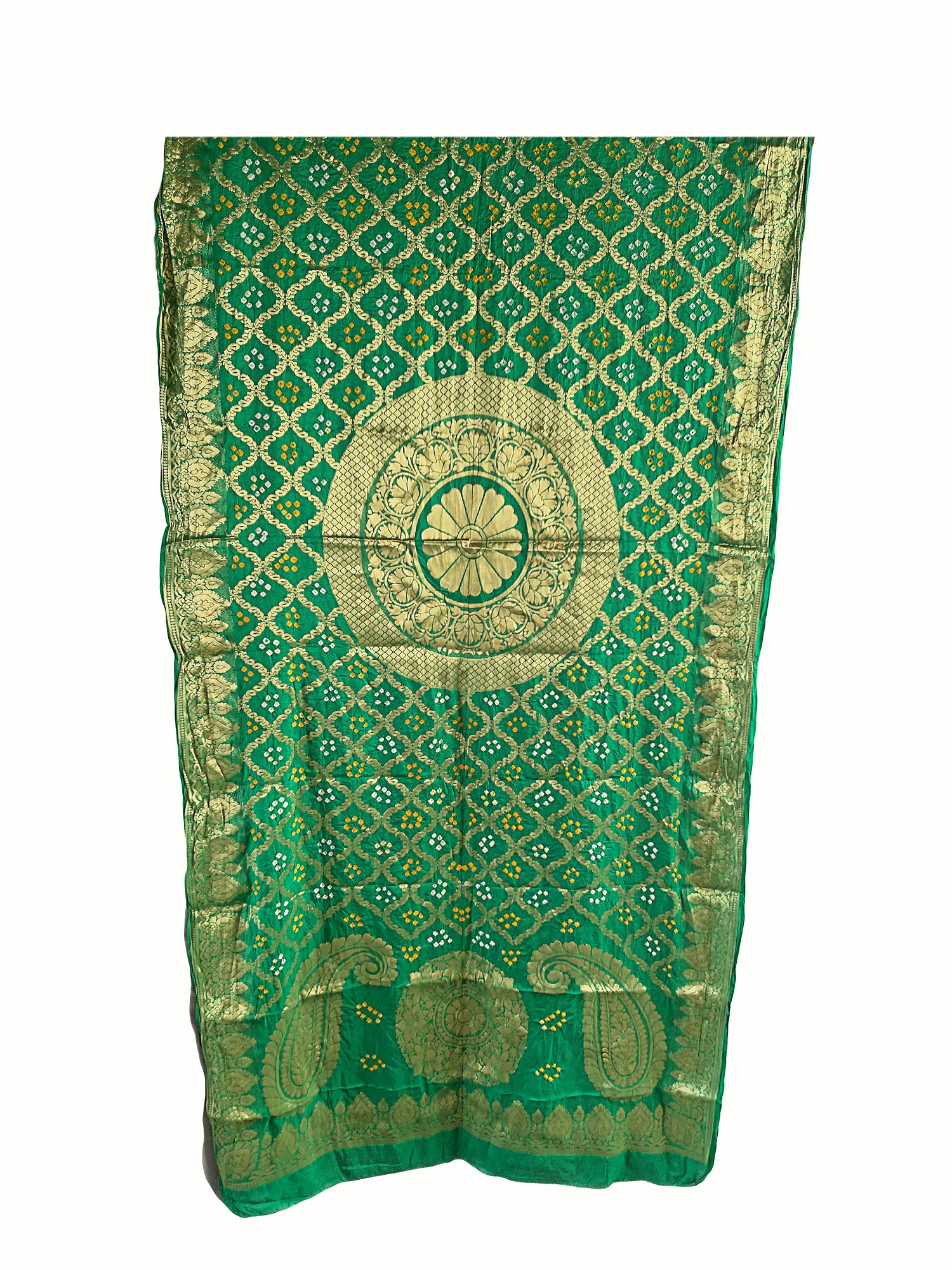 Traditional Designer Bandhani Bandhej Art Silk Zari Dupatta and can be mix up with any combination to add an eye catching look.