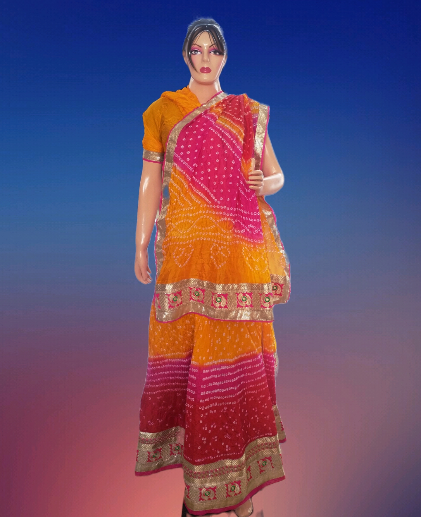 Designer Art Silk Bandhani Lehenga with Dupatta and Blouse