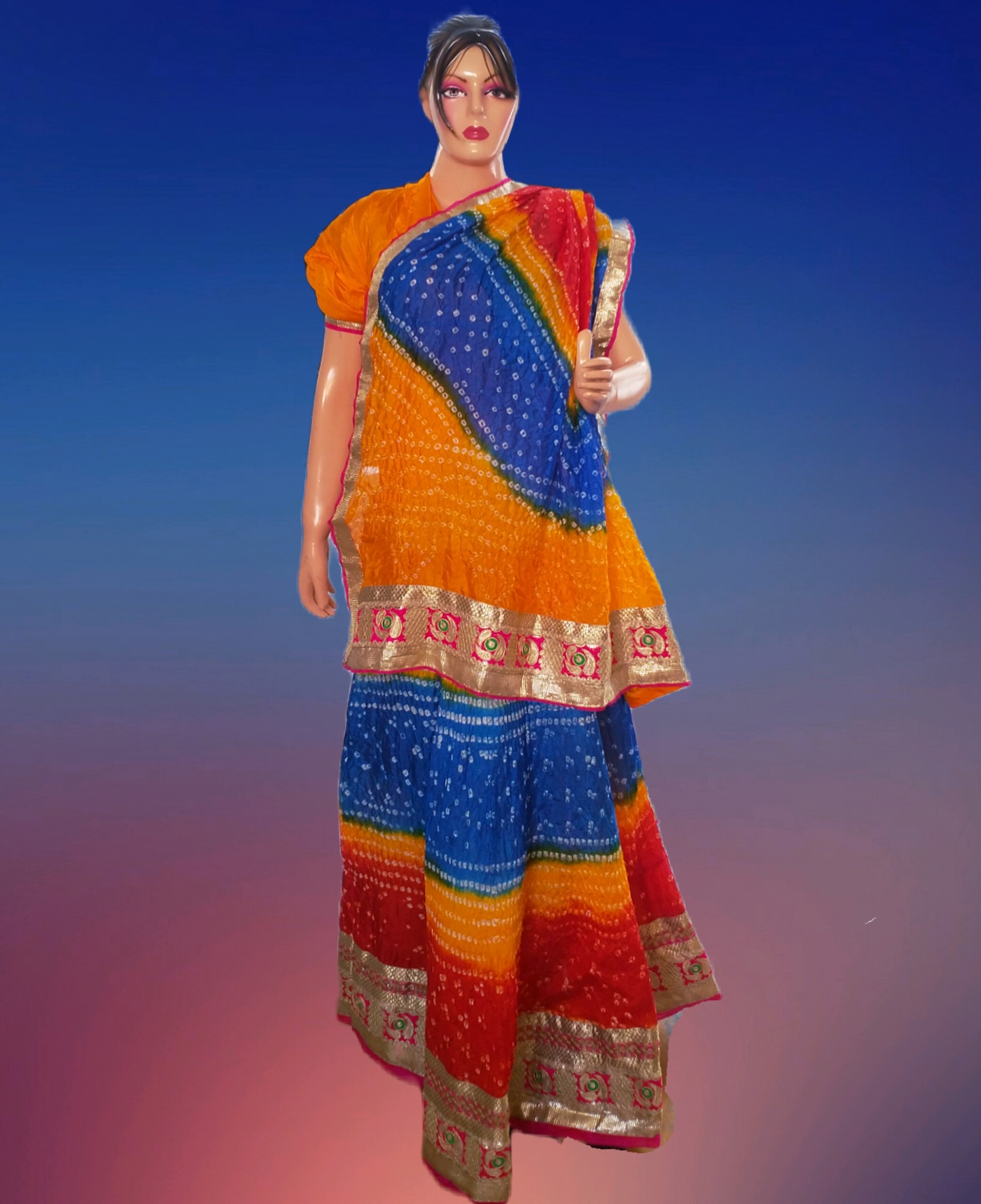 Designer Art Silk Bandhani Lehenga with Dupatta and Blouse