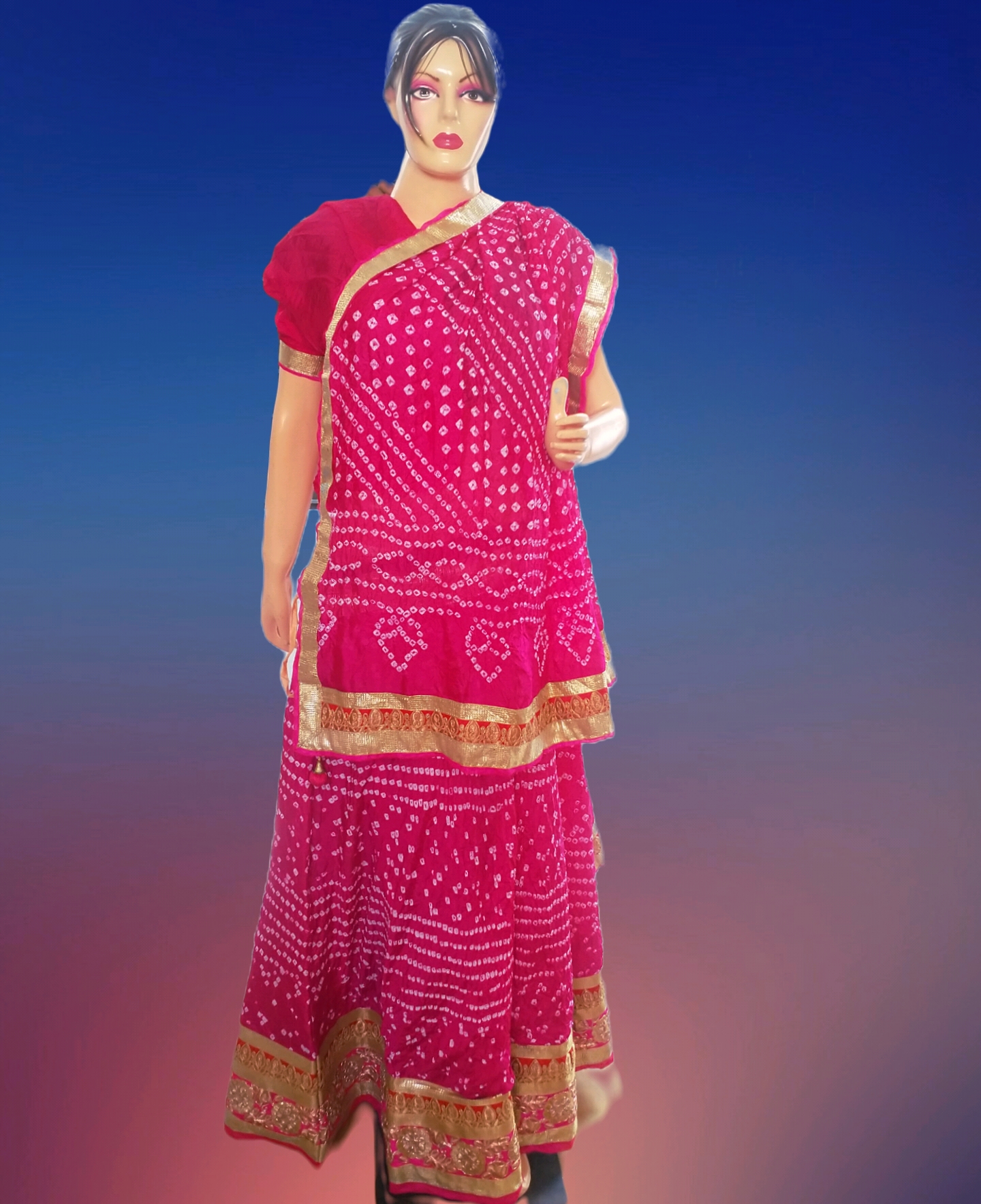 Designer Art Silk Bandhani Lehenga with Dupatta and Blouse