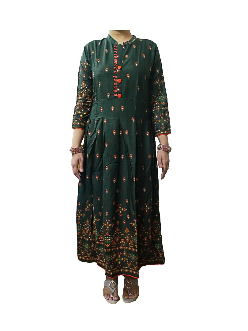 Aaradhya Fashion Desginer Rayon Printed Long Kurti Gown for all Occasions.Designer Print all over the Flare to add more beauty in your style.